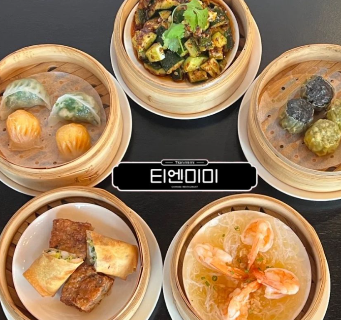 식당 '티엔미미'는 영화 '첨밀밀'에서 영감을 받은 분위기와 정지선 셰프의 캐리커처가 담긴 인테리어가 특징이며, 트러플 쇼마이, 부추 수정 교자, 마라 전골, 동파육 등 다양한 딤섬과 중식 요리를 제공합니다.