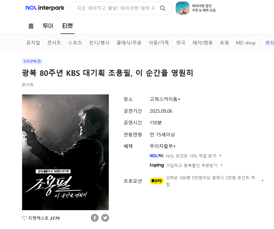 요약하자면, 2025년 9월 6일 고척 스카이돔에서 열리는 광복 80주년 KBS 대기획 조용필 콘서트는 대한민국 음악사의 큰 의미를 지닌 무료 공연입니다.