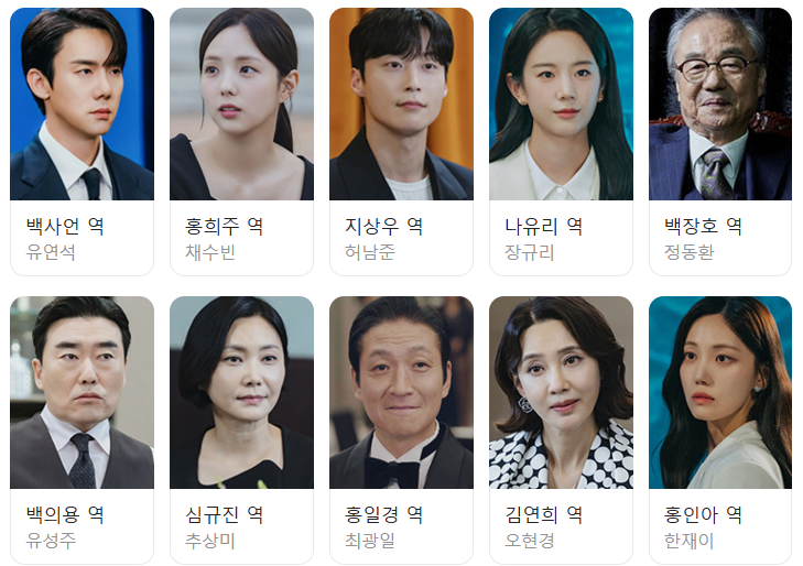 채수빈 배우가 연기하는 홍희주는 우리나라 최고 언론사주의 둘째 딸이자 차기 대권 주자의 외동 며느리입니다. 게다가 국민들의 절대적인 사랑과 지지를 받는 대통령실 대변인의 아내이기도 합니다. 겉으로 보기에는 완벽한 삶을 사는 듯 보이지만, 속으로는 여덟 살부터 시작된 함묵증, 만성 무기력증, 울화병으로 곪아 터지기 일보 직전입니다.