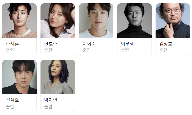 출연 배우로는 주지훈, 한효주, 이희준, 이무생 등이 참여하였으며 아래에서 주요 인물에 대해 안내해 드리겠습니다. 우채운 역은 배우 주지훈이 맡았습니다.