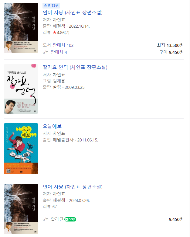 특히 그의 소설은 최근 화제가 되었습니다. 차인표는 1997년 뉴스에서 55년 만에 고향을 찾은 훈 할머니의 모습을 보고 소설을 쓰게 되었다고 밝혔습니다.