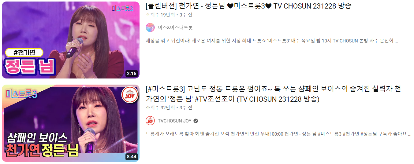 당시 천가연님이 부른 노래가 상당히 인상깊어서 기억에 남았습니다. 당시 천가연님은 뛰어난 가창력과 깊은 감성을 쏟아내는 창법으로 기억에 많이 남았습니다.