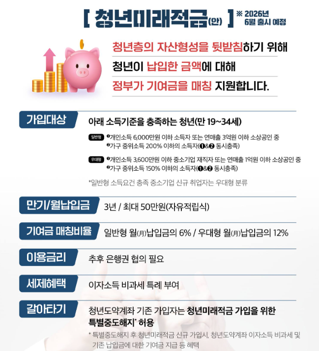해당 상품은 오는 2026년 6월에 최초로 출시될 예정이며 출시 이후부터는 매년 상반기와 하반기로 나누어 연 2회에 걸쳐 신규 가입자를 모집하는 방식으로 운영됩니다. 따라서 가입을 희망하는 청년들은 매년 6월과 12월에 예정된 집중 신청 기간을 반드시 확인해야 합니다.