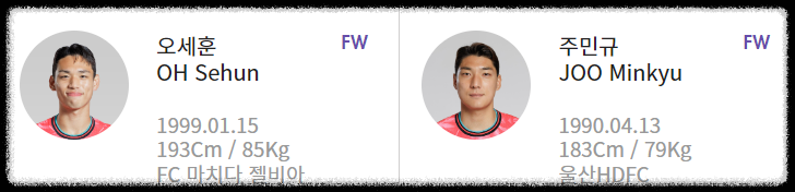 이동경(김천 상무), 정호연(광주 FC), 양민혁(강원 FC), 엄지성(스완지 시티)이 포함되었습니다. 마지막으로, 공격수로는 주민규(울산 현대)와 오세훈(마치다 젤비아)이 선발되었습니다.