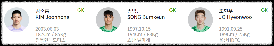 이번 명단은 총 26명으로 구성되며, 각 포지션별로 다음과 같은 선수가 선발되었습니다. 골키퍼 포지션에는 조현우(울산 현대), 송범근(쇼난 벨마레), 김준홍(전북 현대)이 포함되었습니다.
