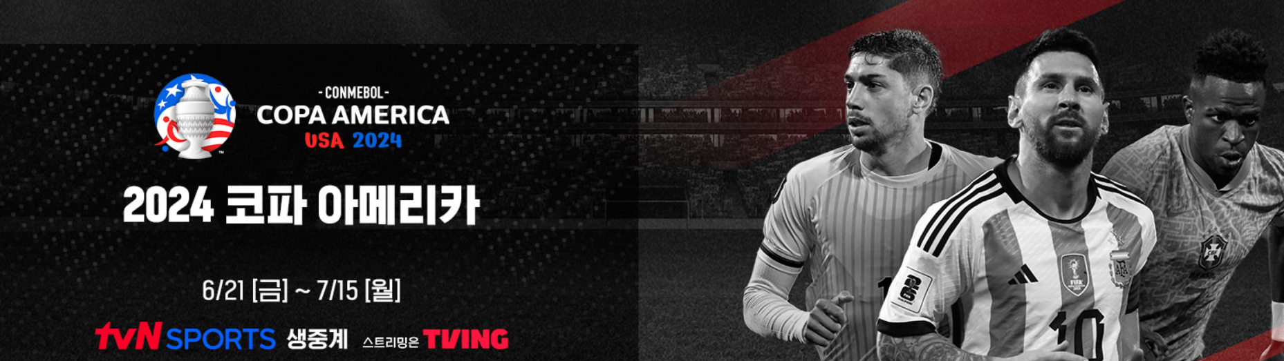 이번 코파 아메리카는 티빙(TVING)에서 온라인 스트리밍 독점 중계권을 가지고 있으며 tvN SPORTS는 TV 채널 중계를 담당합니다.