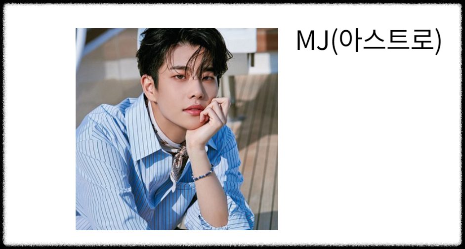 MJ (아스트로)아이돌 그룹 아스트로의 멤버로, 밝고 에너지 넘치는 모습으로 사랑받고 있습니다. '팝업상륙작전'에서는 팀의 막내로서 특유의 긍정적인 에너지와 붙임성으로 맛집 섭외에 활력을 불어넣습니다.