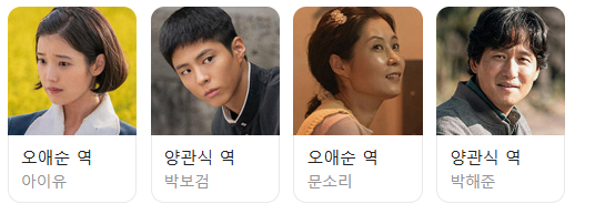 주연진으로는 한국을 대표하는 배우들이 총출동했습니다. 아이유, 박보검, 문소리, 박해준 등 실력파 배우들이 출연하여 작품의 완성도를 한층 높였습니다. 특히 아이유와 박보검의 케미스트리는 이미 예고편만으로도 화제를 모으고 있어, 본편에서의 연기 호흡이 기대를 모으고 있습니다.