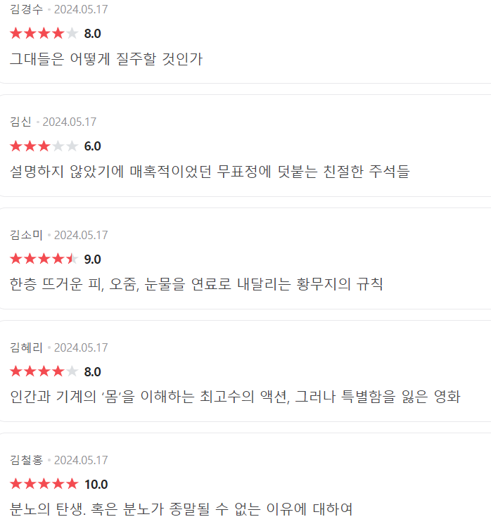 물론 영화에 대한 평가는 개인적인 취향에 따라 다를 수 있으므로, 다양한 리뷰와 평점을 참고하여 관람 여부를 결정하는 것이 좋습니다.