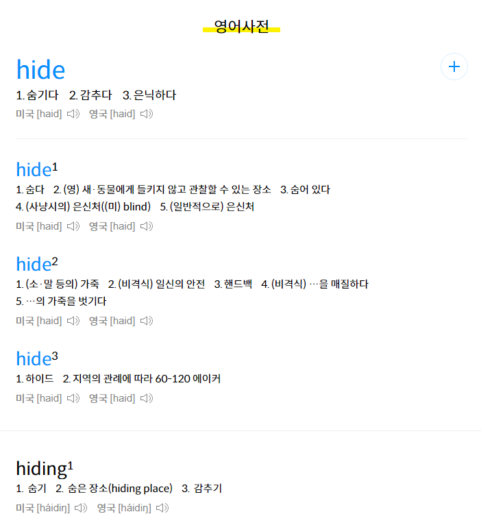 하이드는 영어로 hide로 표기되는 단어이며 그 뜻은 숨기다, 감추다, 은닉하다등의 뜻을 가지고 있습니다. 드라마 하이드는 이 단어의 뜻과 의미를 그대로 가지고 있습니다.