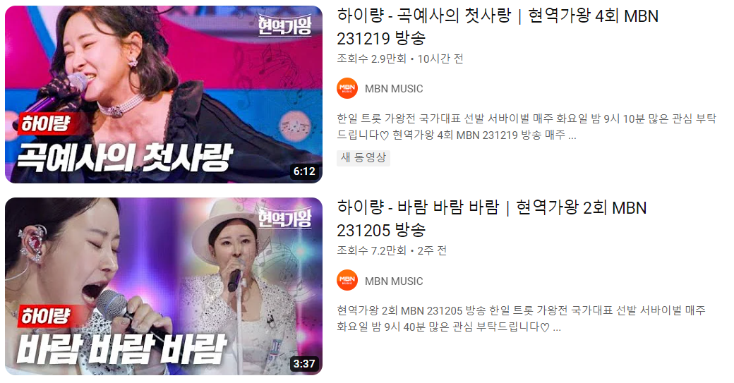 하이량님은 미스트롯 시즌2에 출연하면서 보다 더 얼굴을 알리기 시작했습니다. 당시 방송 출연에서는 23년차의 지방 가수활동을 한것으로 알려지기도 하였습니다.