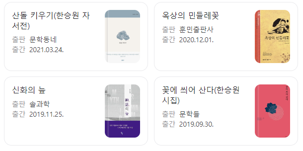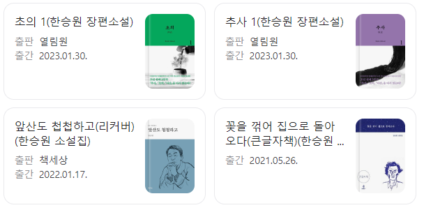 1997년 고향인 장흥으로 돌아가 현재까지 왕성한 작품 활동을 펼치고 있으며, 섬과 바다를 배경으로 한 토속적인 작품 세계를 통해 한국 문학의 지평을 넓혔습니다. 한승원 작가님은 고령에도 불구하고 여전히 왕성한 집필 활동을 이어가고 계십니다.
