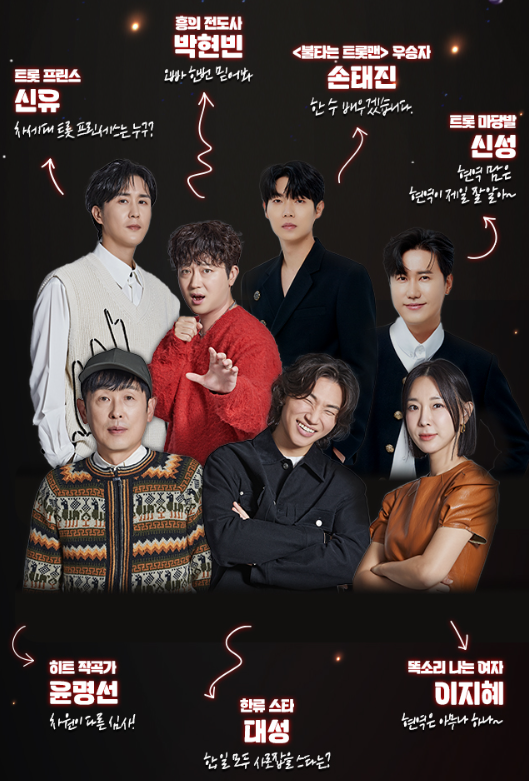 얼굴에 마스크를 가리고 등장하여 같은 출연진들조차 누군지 궁금해하면서 궁금증을 드러냈습니다. 여기서 떠오르는 장면 하나는 과거에 한 트로트 방송에서도 마스크를 쓰고 출연한 사례가 있습니다.