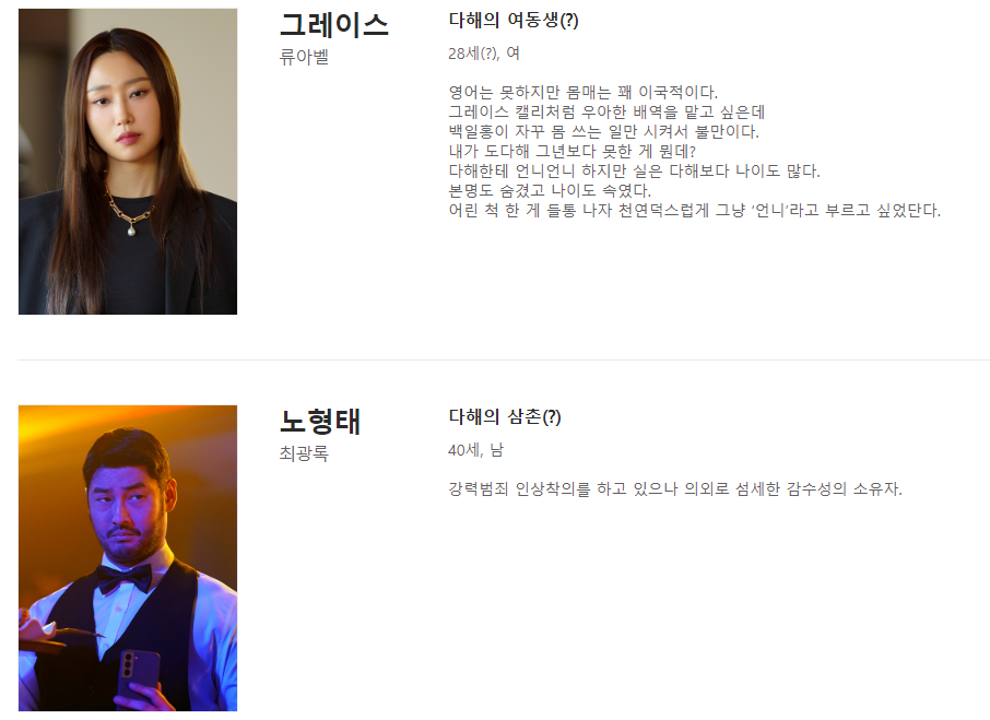 그레이스 역은 배우 류아벨이 맡았고 최광록 배우는 세한 감수성의 소유자 노형태 역을 맡았습니다. 히어로는 아닙니다만'은 뻔한 히어로물의 공식을 탈피하여 새로운 재미를 선사하는 드라마입니다.