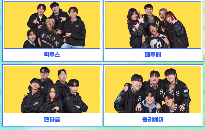 1700여 팀이라는 엄청난 참가자들이 3개월 동안 매일같이 오디션에 참여하며 꿈을 향한 열정을 불태웠습니다. 그중 54팀만이 본선에 진출하는 영광을 얻었는데요. 크게 밴드부와 솔로그룹으로 나뉩니다.